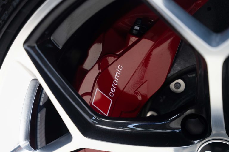 Kırmızı renkte kaliperlere sahip seramik frenler